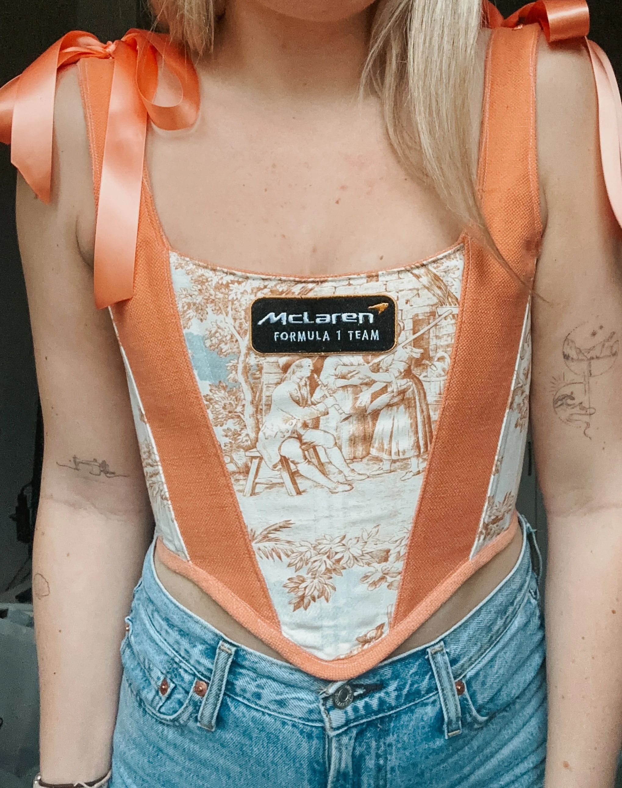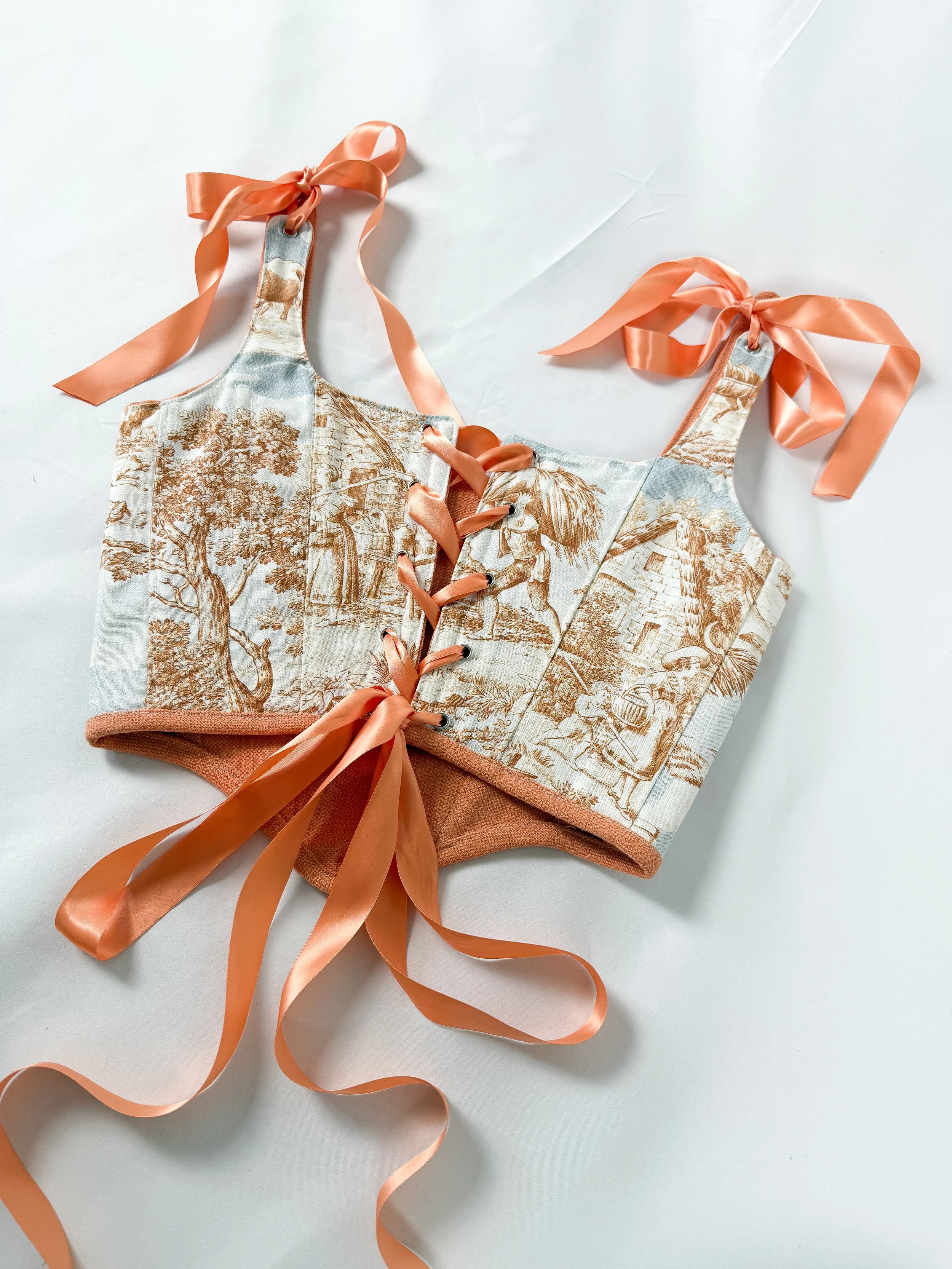 • Our corsets and bags are made from printed cotton and soft, washable linen.